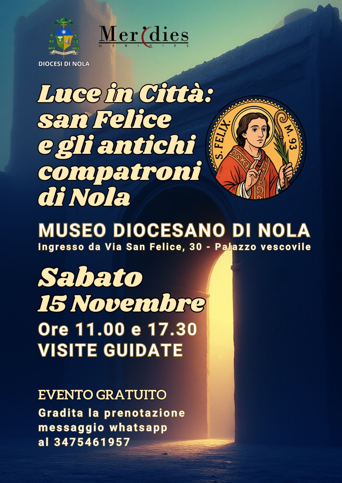 In occasione della solennità di San Felice, primo vescovo di Nola e martire, compatrono della città e della diocesi, l'associazione Meridies, storica collaboratrice della chiesa nolana nella promozione del suo ricco patrimonio storico, artistico e culturale, ha voluto proporre al pubblico la possibilità di visite guidate gratuite alla scoperta di "giganti" della fede che si sono spesi per il territorio nolano. Si tratta di un percorso tra storia, fede e anche identità cittadina grazie ai preziosi beni culturali di cui il Museo diocesano è importante custode.
