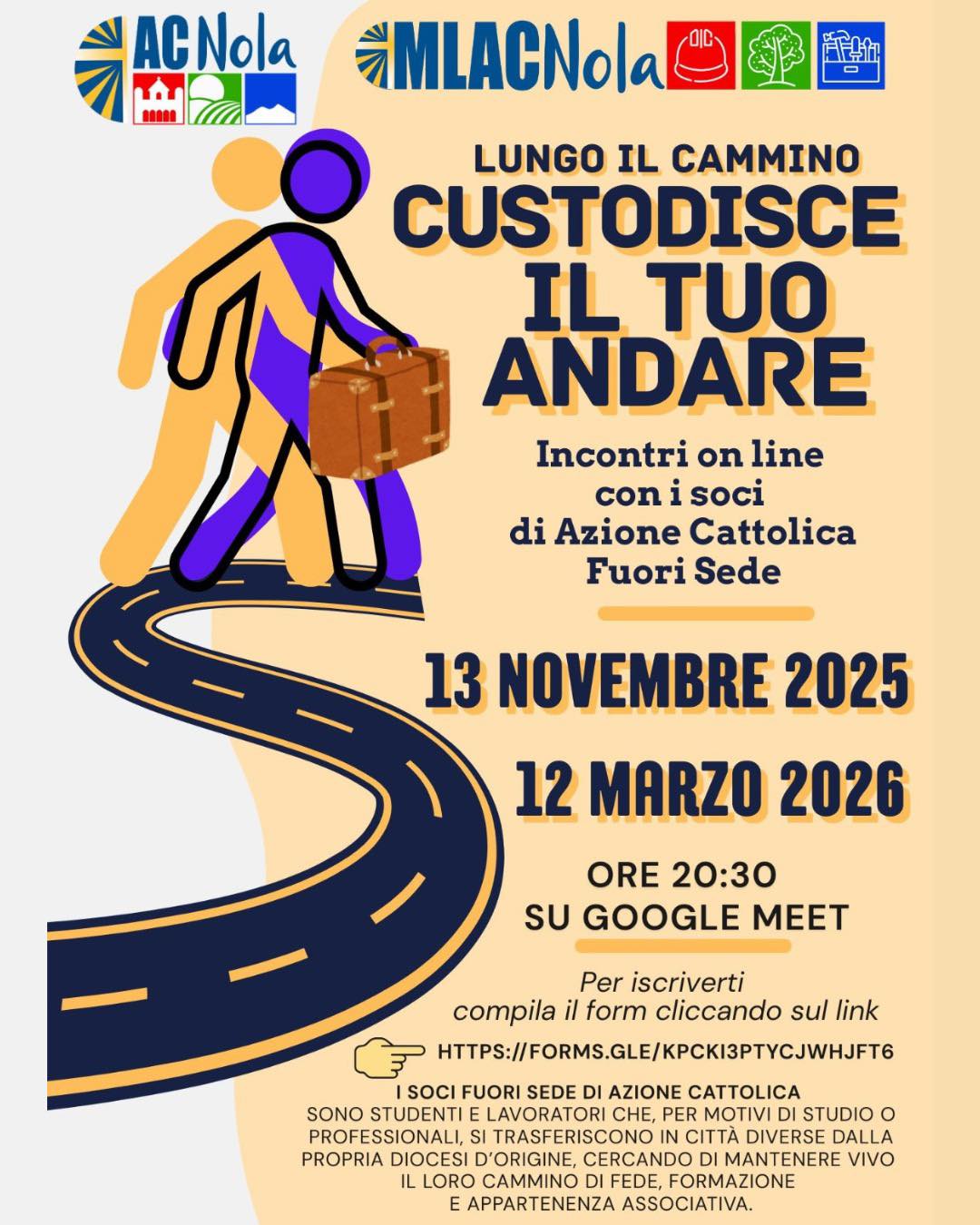 Anche quest'anno il Movimento Lavoratori dell'Azione cattolica (Mlac) della diocesi di Nola ha organizzato, per i soci di Ac studenti e lavoratori che si trovano lontani dalla propria diocesi di orgine, due incontri di formazione, riflessione e confronto. Il primo momento è stato vissuto ieri giovedì 13 novembre, mentre il prossimo appuntamento è già fissato per il 12 marzo 2026.